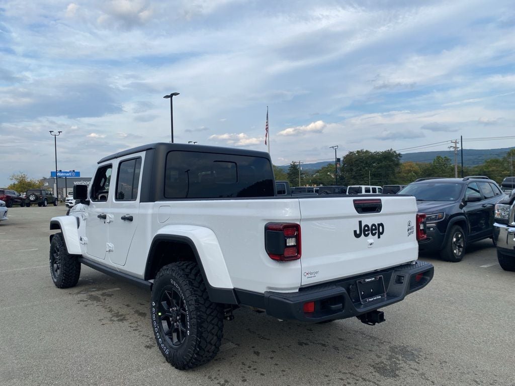 Bright White Clearcoat 2025 Jeep Gladiator Willys 4WD 8-Speed Automatic 3.6L V6 24V VVT 110 MPH Vehicle Max Speed Calibration, 115V Auxiliary Power Outlet, 12.3 Touchscreen Display, 3.73 Rear Axle Ratio, 4-Wheel Disc Brakes, 4-Wheel Drive Decal, 400W Inverter, 4G LTE Wi-Fi Hot Spot, 8 Speakers, ABS brakes, Advanced Brake Assist, Air Conditioning, Air Conditioning w/Auto Temperature Control, Alexa Built-In, Alpine Premium Audio System, AM/FM radio: SiriusXM, Apple CarPlay, Apple CarPlay/Android Auto, Auto High Beam Headlamp Control, Auto-Dimming Rear-View Mirror, Automatic Headlamps, Auxiliary Switches, Black 3-Piece Hard Top, Black Grille, Blind Spot & Cross Path Detection, Bluetooth® Wireless Speaker, Body Color Fender Flares (2-Piece), Brake assist, Class IV Receiver Hitch, Cloth Low-Back Bucket Seats, Cluster 7.0 TFT Color Display, Compass, Connected Travel & Traffic Services, Connectivity - US/Canada, Convenience Group, Corning Gorilla Glass, Daytime Running Lamp System, Daytime Running Lamps LED Accents, Deep Tint Sunscreen Windows, Delay-off headlights, Driver door bin, Driver vanity mirror, Dual front impact airbags, Dual front side impact airbags, E-Locker Rear Axle, Electronic Stability Control, Emergency/Assistance Call, Enhanced Adaptive Cruise Control, Freedom Panel Storage Bag, Front anti-roll bar, Front Bucket Seats, Front Center Armrest w/Storage, Front Door Locks 2-Door Passive Entry, Front fog lights, Front Heavy Duty Red Accent Shock Absorbers, Front LED Fog Lamps, Front License Plate Bracket, Front reading lights, Full Speed Forward Collision Warning Plus, Google Android Auto, GPS Antenna Input, GPS Navigation, HD Radio, Heated Front Seats, Heated Steering Wheel, Heavy-Duty Engine Cooling, Illuminated entry, Integrated Center Stack Radio, Integrated roll-over protection, Integrated Voice Command w/Bluetooth®, LED Premium Reflector Headlamps, LED Taillamps, Low tire pressure warning, Media Hub w/2 Charge Only USBs, Mold In Color Bumper w/Gloss Black, MOPAR All-Weather Slush Mats, MOPAR Plastic Door Sill Guards, MOPAR Spray In Bedliner, Normal Duty Suspension, Occupant sensing airbag, Off-Road Plus Mode, Outside temperature display, Overhead airbag, Panic alarm, ParkSense Rear Park Assist System, ParkView Rear Back-Up Camera, Passenger door bin, Passenger vanity mirror, Power Heated Mirrors, Power steering, Power windows, Premium Wrapped Steering Wheel, Protection Sill Rails, Quick Order Package 24W Willys, Radio data system, Radio: Uconnect 5 Nav w/12.3 Display, Radio: Uconnect 5 w/12.3 Display, Rear anti-roll bar, Rear Heavy Duty Red Accent Shock Absorbers, Rear reading lights, Rear Sliding Window, Rear Window Defroster, Remote keyless entry, Remote Start System, Safety Group, Security Alarm, SiriusXM Radio Service, SiriusXM w/360L, Speed control, Split folding rear seat, Steering wheel mounted audio controls, Sun Visors w/Illuminated Vanity Mirrors, Tachometer, Technology Group, Telescoping steering wheel, Tilt steering wheel, Traction control, Trailer Hitch Zoom, Trip computer, Universal Garage Door Opener, USB Host Flip, Variably intermittent wipers, Voltmeter, Wheels: 17 x 7.5 Black Steel Styled, Wheels: 17 x 7.5 Painted Black, Willys Hood Decal, Willys Suspension. Price includes: $2250 - 2025 National Retail Bonus Cash . Exp. 02/02/2026