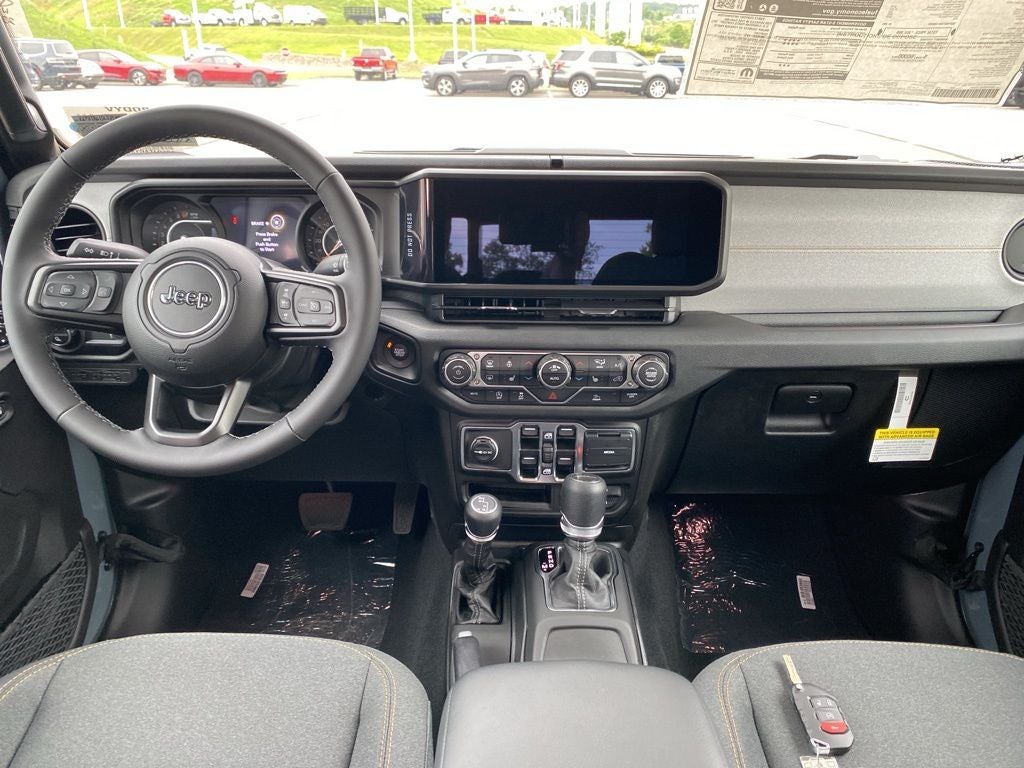 Convenience Group (Corning Gorilla Glass, Daytime Running Lamp System, Emergency/Assistance Call, Front Door Locks 2-Door Passive Entry, Heated Front Seats, Heated Steering Wheel, Remote Start System, and Universal Garage Door Opener), LED Headlamp & Fog Lamp Group (Daytime Running Lamps LED Accents, Front LED Fog Lamps, and LED Premium Reflector Headlamps), Quick Order Package 24S Sport S (Advanced Brake Assist, Automatic Headlamps, Deep Tint Sunscreen Windows, Enhanced Adaptive Cruise Control, Full Speed Forward Collision Warning Plus, Normal Duty Plus Suspension, Power Heated Mirrors, Premium Wrapped Steering Wheel, Security Alarm, Sun Visors w/Illuminated Vanity Mirrors, and Wheels: 17 x 7.5 Gray), Trailer Tow & Aux Switch Group (Auxiliary Switches, Class IV Receiver Hitch, Heavy-Duty Engine Cooling, and Trailer Hitch Zoom), 110 MPH Vehicle Max Speed Calibration, 12.3 Touchscreen Display, 3.73 Rear Axle Ratio, 4-Wheel Disc Brakes, 4G LTE Wi-Fi Hot Spot, 8 Speakers, ABS brakes, Air Conditioning, Alexa Built-In, AM/FM radio: SiriusXM, Apple CarPlay, Apple CarPlay/Android Auto, Black 3-Piece Hard Top, Brake assist, Cloth Low-Back Bucket Seats, Compass, Connectivity - US/Canada, Delay-off headlights, Driver door bin, Driver vanity mirror, Dual front impact airbags, Dual front side impact airbags, Electronic Stability Control, Freedom Panel Storage Bag, Front anti-roll bar, Front Bucket Seats, Front Center Armrest w/Storage, Front fog lights, Front reading lights, Google Android Auto, Illuminated entry, Integrated roll-over protection, Jeep Trail Rated Kit, Low tire pressure warning, Manufacturer's Statement of Origin, MOPAR All-Weather Slush Mats, MOPAR Spray In Bedliner, Normal Duty Suspension, Occupant sensing airbag, Outside temperature display, Overhead airbag, Panic alarm, ParkView Rear Back-Up Camera, Passenger door bin, Passenger vanity mirror, Power steering, Power windows, Radio data system, Radio: Uconnect 5 w/12.3 Display, Rear anti-roll bar, Rear reading lights, Rear Sliding Window, Rear Window Defroster, Remote keyless entry, Speed control, Split folding rear seat, Steering wheel mounted audio controls, Tachometer, Telescoping steering wheel, Tilt steering wheel, Traction control, Trip computer, USB Host Flip, Variably intermittent wipers, Voltmeter, and Wheels: 17 x 7.5 Black Steel Styled. Price includes: $1000 - 2025 National Stellantis Loyalty Bonus Cash . Exp. 03/02/2026 $2000 - 2025 National Select Inventory Bonus Cash. Exp. 03/02/2026 $2250 - 2025 National Retail Bonus Cash . Exp. 03/02/2026 $500 - 2025 National 2025 First Responder Bonus Cash. Exp. 01/04/2027