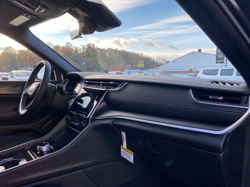 Diamond Black Crystal Pearlcoat 2025 Jeep Grand Cherokee Laredo X 4WD 8-Speed Automatic 3.6L V6 24V VVT 4WD, 115V Auxiliary Power Outlet, 180 Amp Alternator, 4-Wheel Disc Brakes, 6 Speakers, 7 and 4-Pin Wiring Harness, ABS brakes, Air Conditioning, Alloy wheels, AM/FM radio: SiriusXM, Anti-whiplash front head restraints, Automatic Headlamp Levelling System, Automatic temperature control, Brake assist, Bumpers: body-color, Class IV Receiver Hitch, Cloth Seats, Compass, Delay-off headlights, Driver door bin, Driver vanity mirror, Dual front impact airbags, Dual front side impact airbags, Electronic Stability Control, Emergency communication system, Four wheel independent suspension, Front anti-roll bar, Front Bucket Seats, Front Center Armrest w/Storage, Front dual zone A/C, Front License Plate Bracket, Front reading lights, Fully automatic headlights, Heated door mirrors, Heated Front Seats, Heated Steering Wheel, Heavy-Duty Engine Cooling, Illuminated entry, Knee airbag, Laredo X, Low tire pressure warning, Luxury Tech Group I, Model Year Tracking, Normal Duty Suspension, Occupant sensing airbag, Outside temperature display, Overhead airbag, Overhead console, Panic alarm, ParkView Rear Back-Up Camera, Passenger door bin, Passenger vanity mirror, Power door mirrors, Power driver seat, Power Liftgate, Power steering, Power Sunroof, Power windows, Quick Order Package 23D Laredo X, Radio data system, Radio: Uconnect 5 with 8.4 Display, Rain Sensitive Windshield Wipers, Rear anti-roll bar, Rear Load Levelling Suspension, Rear reading lights, Rear window defroster, Rear window wiper, Remote keyless entry, Remote Start System, Satellite Radio, Secondary Active Grille Shutters, Security system, Selectable Tire Fill Alert, Speed control, Speed-Sensitive Wipers, Split folding rear seat, Spoiler, Steering wheel mounted audio controls, Tachometer, Telescoping steering wheel, Tilt steering wheel, Traction control, Trailer Hitch Zoom, Trailer Tow Package, Trip computer, Variably intermittent wipers, Voltmeter, Wheels: 17 x 6.5 Fully Painted Aluminum, Wheels: 18 x 8 Fully Painted Aluminum, Wireless Charging Pad, 4WD.