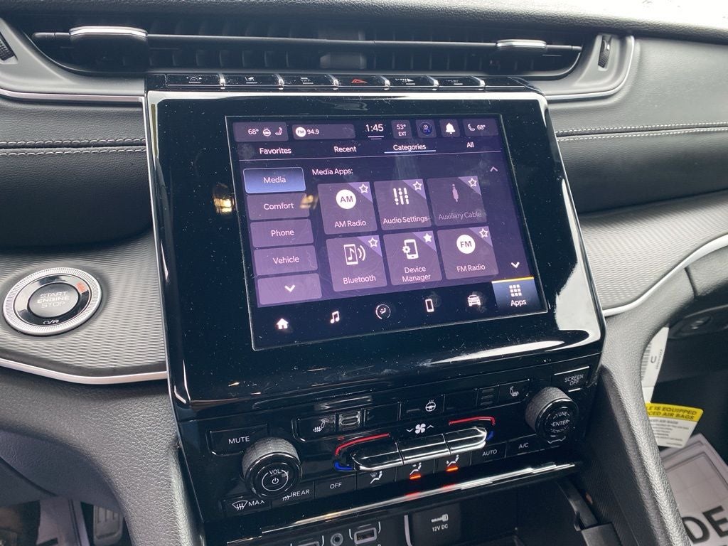 Bright White Clearcoat 2025 Jeep Grand Cherokee Limited 4WD 8-Speed Automatic 3.6L V6 24V VVT 4WD, 4-Wheel Disc Brakes, 6 Speakers, ABS brakes, Active Noise Control System, Air Conditioning, Alloy wheels, AM/FM radio: SiriusXM with 360L, Anti-whiplash front head restraints, Audio memory, Auto High-beam Headlights, Automatic temperature control, Black Painted Roof, Blackout Model, Brake assist, Bumpers: body-color, Capri Leatherette Seats, Compass, Delay-off headlights, Delete Limited Badge, Driver door bin, Driver vanity mirror, Dual front impact airbags, Dual front side impact airbags, Dual-Pane Panoramic Sunroof, Electronic Stability Control, Emergency communication system, Four wheel independent suspension, Front anti-roll bar, Front Bucket Seats, Front Center Armrest w/Storage, Front dual zone A/C, Front fog lights, Front License Plate Bracket, Front reading lights, Fully automatic headlights, Garage door transmitter, Gloss Black Exterior Accents, Heated door mirrors, Heated front seats, Heated rear seats, Heated steering wheel, Illuminated entry, Knee airbag, Low tire pressure warning, Memory seat, Model Year Tracking, Navigation System, Normal Duty Suspension, Occupant sensing airbag, Outside temperature display, Overhead airbag, Overhead console, Panic alarm, ParkView Rear Back-Up Camera, Passenger door bin, Passenger vanity mirror, Power door mirrors, Power driver seat, Power Liftgate, Power passenger seat, Power steering, Power windows, Quick Order Package 23E, Radio data system, Radio: Uconnect 5 Nav with 10.1 Display, Rear anti-roll bar, Rear reading lights, Rear window defroster, Rear window wiper, Remote keyless entry, Security system, Speed control, Speed-Sensitive Wipers, Split folding rear seat, Spoiler, Steering wheel mounted audio controls, Tachometer, Telescoping steering wheel, Tilt steering wheel, Traction control, Trip computer, Turn signal indicator mirrors, Variably intermittent wipers, Voltmeter, Wheels: 18 x 8 Polished/Painted Aluminum, Wheels: 20 x 8.5 Black Painted Aluminum, 4WD.