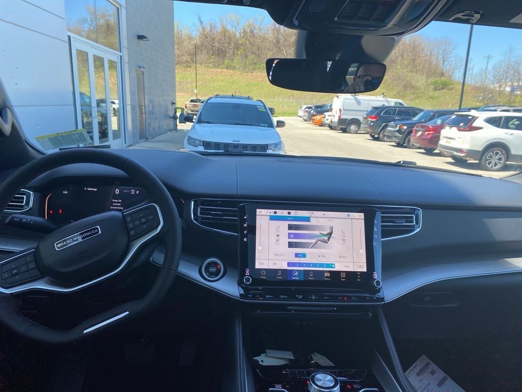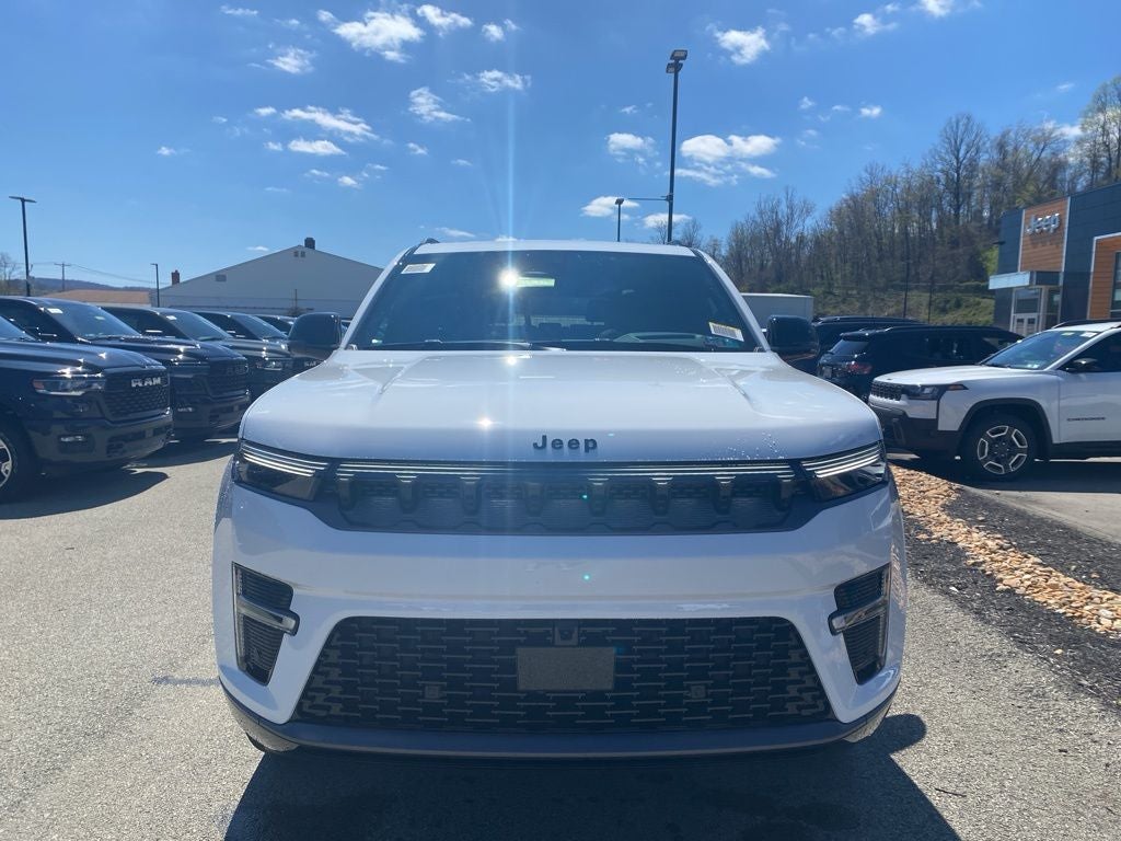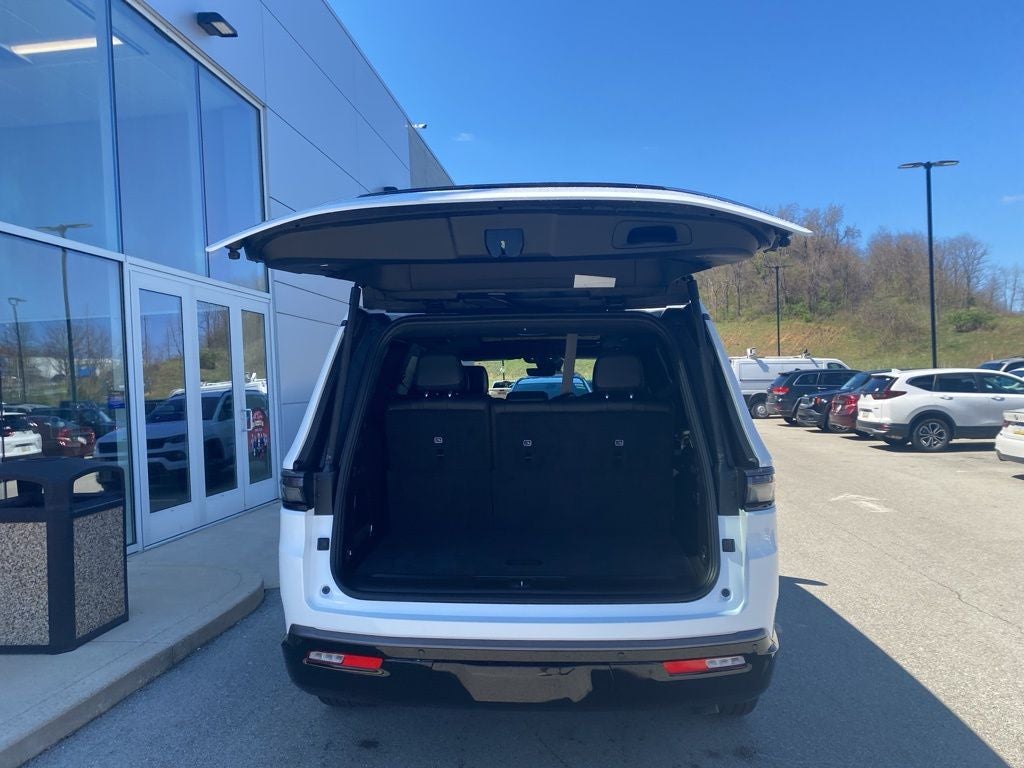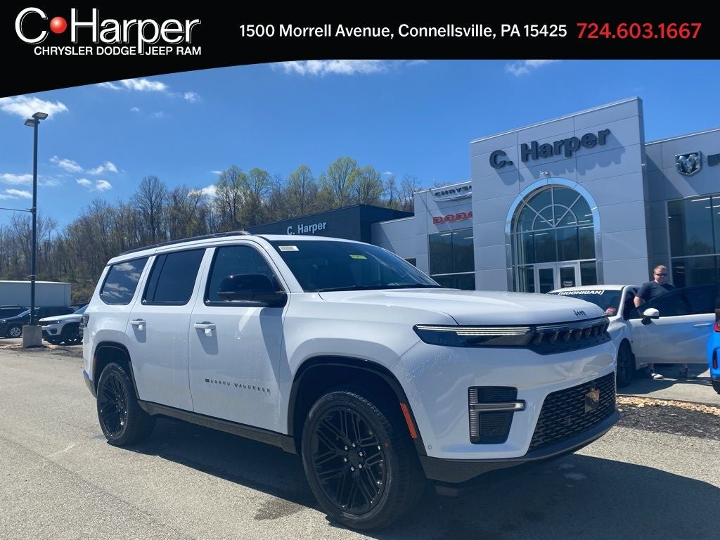 Bright White Clearcoat 2026 Jeep Grand Wagoneer Limited Reserve 4WD 8-Speed Automatic 3.0L I6 118 Mph Maximum Speed Calibration, 19 Speaker McIntosh Audio System, 2nd Row Manual Window Shades, 3 Panel Sunroof, 3.55 Rear Axle Ratio, 3rd row seats: bench, 4-Wheel Disc Brakes, 9 Speakers, ABS brakes, Air Conditioning, Alloy wheels, AM/FM radio: SiriusXM with 360L, Anti-whiplash front head restraints, Apple CarPlay/Android Auto, Audio memory, Augmented HUD, Auto Adjust in Reverse Exterior Mirrors, Auto High-beam Headlights, Auto-dimming door mirrors, Auto-Dimming Exterior Driver Mirror, Auto-dimming Rear-View mirror, Auto-leveling suspension, Automatic temperature control, Black Appearance Package, Black Exterior Accents, Brake assist, Bumpers: body-color, Cargo Cover, Cluster 12 TFT Color Display, Compass, Delay-off headlights, Driver door bin, Driver vanity mirror, Driver's Seat Mounted Armrest, Dual front impact airbags, Dual front side impact airbags, Electronic Stability Control, Emergency communication system: Jeep Connect, Exterior Mirrors Approach Lamps, Exterior Mirrors with Memory, Exterior Mirrors with Supplemental Signals, Exterior Parking Camera Rear, Four wheel independent suspension, Front anti-roll bar, Front Bucket Seats, Front Center Armrest w/Storage, Front dual zone A/C, Front fog lights, Front reading lights, Fully automatic headlights, Garage door transmitter, Heated door mirrors, Heated Exterior Mirrors, Heated front seats, Heated rear seats, Heated steering wheel, Illuminated entry, Instrument Panel, Interior Rear Facing Camera, Knee airbag, Leather Trimmed Bucket Seats, Limited Reserve Package, Low tire pressure warning, Luxury Front and Rear Floor Mats, Memory seat, MyFlexCare Service Plan, Navigation System, Normal Duty Suspension, Occupant sensing airbag, Outside temperature display, Overhead airbag, Overhead console, P and P Park and Unpark Assist with Stop System, Panic alarm, Passenger door bin, Passenger seat mounted armrest, Passenger vanity mirror, Power Deployable Running Boards, Power door mirrors, Power driver seat, Power Liftgate, Power passenger seat, Power steering, Power windows, Quadra-Lift Air Suspension, Quick Order Package 29D Reserve, Radio data system, Radio: Uconnect 5 Nav with 12.0 Display, Rain sensing wipers, Rear air conditioning, Rear anti-roll bar, Rear reading lights, Rear seat center armrest, Rear window defroster, Rear window wiper, Reclining 3rd row seat, Remote keyless entry, Reversible Carpet/Vinyl Cargo Mat, Security system, Semi Active Damping, Side Distance Warning, Smartphone as a Key Prep, Speed control, Speed-sensing steering, Speed-Sensitive Wipers, Split folding rear seat, Steering wheel memory, Steering wheel mounted audio controls, Surround View Camera System, Tachometer, Telescoping steering wheel, Tilt steering wheel, Titanium Daylight Opening Upper, Titanium Upper Grille Applique, Traction control, Trip computer, Turn signal indicator mirrors, Variably intermittent wipers, Ventilated front seats, Ventilated rear seats, Voltmeter, Wheels: 20 x 9 Aluminum Painted, Wheels: 22 x 9 Painted Gloss Black.