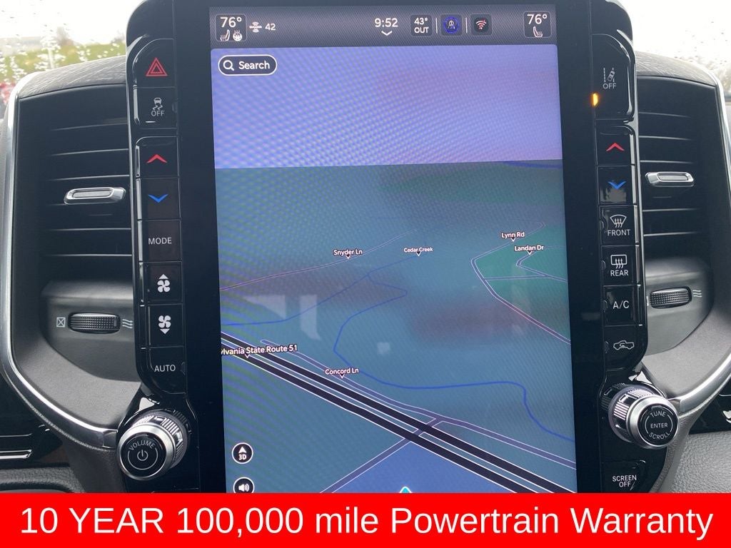 Laramie Level 2 Equipment Group (14.4 Touchscreen Display, 4G LTE Wi-Fi Hot Spot, Apple CarPlay, Cluster 12 TFT Color Display, Connected Travel and Traffic Services, Connectivity - US/Canada, Disassociated Touchscreen Display, Front Passenger Interactive Display, Global Telematics Box Module, Google Android Auto, GPS Antenna Input, GPS Navigation, Harman/Kardon 19 Speaker Premium Sound, HD Radio, Integrated Center Stack Radio, Integrated Voice Command with Bluetooth®, Power Tailgate, Radio: Uconnect 5 Nav with 14.4 Display, Rain Sensitive Windshield Wipers, SiriusXM Radio Service, SiriusXM with 360L, and USB Host Flip), Quick Order Package 21H Laramie, Towing Technology Group (Trailer Hitch Line-Up Assist), Trailer Tow Group (Trailer Brake Control, Trailer Reverse Steering Control, and Trailer Tire Pressure Monitoring System), 10 Speakers, 4-Wheel Disc Brakes, ABS brakes, Adjustable pedals, Air Conditioning, Alloy wheels, AM/FM radio: SiriusXM with 360L, Apple CarPlay/Android Auto, Audio memory, Auto High-beam Headlights, Auto Power-Folding Mirrors, Auto-dimming door mirrors, Auto-Dimming Exterior Driver Mirror, Auto-Dimming Exterior Passenger Mirror, Auto-dimming Rear-View mirror, Automatic temperature control, Brake assist, Bumpers: chrome, Chrome Exterior Mirrors, Chrome Power-Fold Trailer Tow Mirrors, Compass, Convex Wide-Angle Exterior Mirror Insert, Delay-off headlights, Driver door bin, Driver vanity mirror, Dual front impact airbags, Dual front side impact airbags, Electronic Stability Control, Exterior Mirrors Courtesy Lamps, Exterior Mirrors with Heating Element, Exterior Mirrors with Memory, Exterior Mirrors with Supplemental Signals, Forward and Reverse Utility Lights, Front anti-roll bar, Front Bucket Seats, Front Center Armrest w/Storage, Front dual zone A/C, Front fog lights, Front reading lights, Front wheel independent suspension, Fully automatic headlights, Garage door transmitter, Heated door mirrors, Heated front seats, Heated rear seats, Heated steering wheel, Illuminated entry, Leather steering wheel, Leather Trimmed Bucket Seats, Low tire pressure warning, Manufacturer's Statement of Origin, Memory seat, Mirror Clearance/Running Lights, MOPAR Front and Rear Rubber Floor Mats, MyFlexCare Service Plan, Navigation System, Occupant sensing airbag, Outside temperature display, Overhead airbag, Overhead console, Panic alarm, ParkView Rear Back-Up Camera, Passenger door bin, Passenger vanity mirror, Pedal memory, Power door mirrors, Power driver seat, Power passenger seat, Power steering, Power Telescoping Mirrors, Power windows, Power-Adjustable Convex Aux Mirrors, Radio data system, Radio: Uconnect 5 Navigation with 12.0 Display, RAM Grille Badge - Chrome, Rear anti-roll bar, Rear reading lights, Rear seat center armrest, Rear step bumper, Remote keyless entry, Security system, Speed control, Split folding rear seat, Steering wheel mounted audio controls, Tachometer, Telescoping steering wheel, Tilt steering wheel, Traction control, Trailer Tow Mirrors, Trip computer, Turn signal indicator mirrors, Variably intermittent wipers, Ventilated front seats, Voltmeter, and Wheels: 20 x 9 Premium Paint/Polish. Price includes: $1000 - 2026 National Bonus Cash . Exp. 03/02/2026 $3500 - 2026 National Retail Consumer Cash . Exp. 03/02/2026 $500 - 2026 National 2026 First Responder Bonus Cash . Exp. 01/04/2027