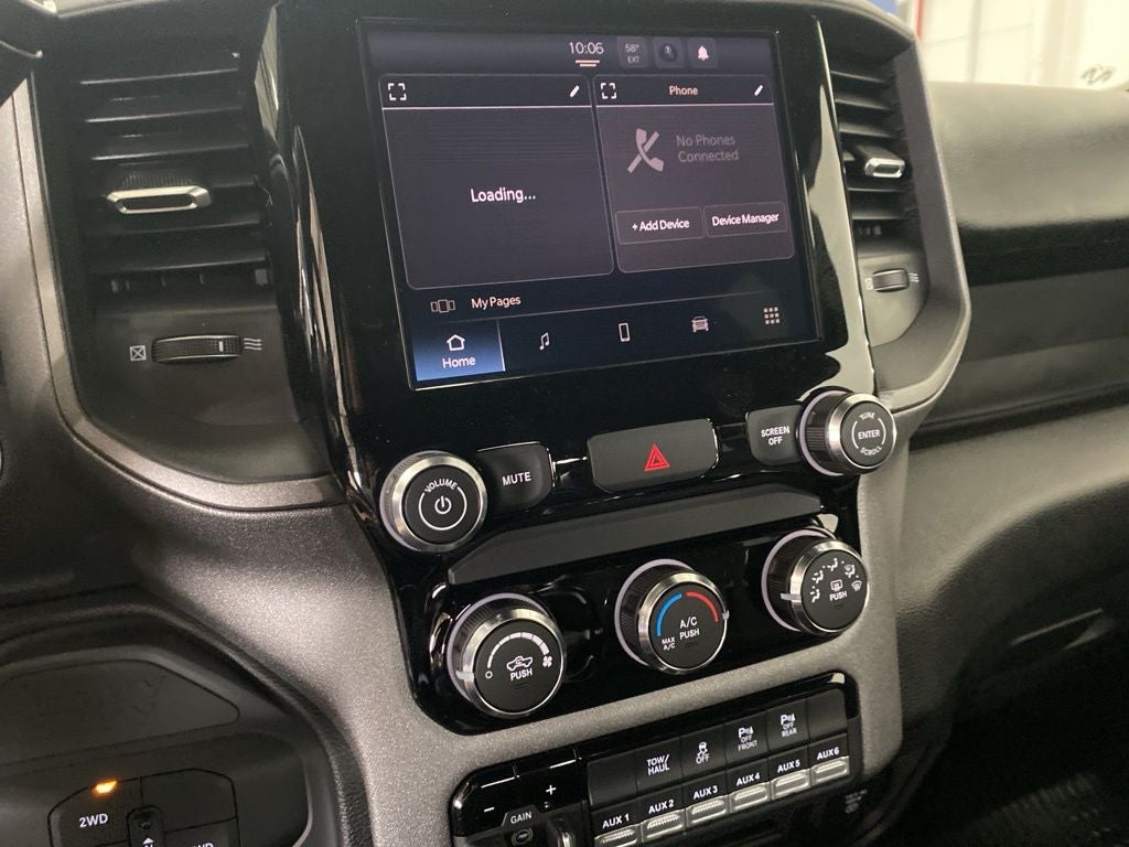 Hydro Blue Pearlcoat 2026 Ram 1500 Warlock 4WD 8-Speed Automatic 3.0L I6 115V Auxiliary Power Outlet, 2nd Row in Floor Storage Bins, 33 Gallon Fuel Tank, 4 Way Front Headrests, 4-Wheel Disc Brakes, 400W Inverter, 48V Belt Starter Generator, 4G LTE Wi-Fi Hot Spot, 6 Speakers, ABS brakes, Air Conditioning, AM/FM radio, Apple CarPlay, Apple CarPlay/Android Auto, Auto High-beam Headlights, Black Exterior Mirrors, Brake assist, Cloth Bench Seat, Cluster 7.0 TFT Color Display, Compass, Connectivity - US/Canada, Delay-off headlights, Driver door bin, Dual front impact airbags, Dual front side impact airbags, E-Locker Rear Axle, Electronic Stability Control, Exterior Mirrors with Heating Element, For Details Visit DriveUconnect.com, Front and Rear Floor Mats, Front anti-roll bar, Front Center Armrest, Front LED Fog Lamps, Front License Plate Bracket, Front Performance Tuned Shock Absorbers, Front reading lights, Front wheel independent suspension, Fully automatic headlights, Global Telematics Box Module, Google Android Auto, GPS Antenna Input, Heated door mirrors, Heavy Duty Vinyl 40/20/40 Split Bench Seat, Illuminated entry, Integrated Center Stack Radio, Integrated Voice Command with Bluetooth®, Low tire pressure warning, Manual Adjust 4-Way Driver Seat, Manual Adjust 4-Way Front Passenger Seat, Manual Folding Exterior Mirrors, Manufacturer's Statement of Origin, Mopar Black Tubular Side Steps, MOPAR Front and Rear Rubber Floor Mats, MyFlexCare Service Plan, Occupant sensing airbag, Outside temperature display, Overhead airbag, Overhead console, Panic alarm, ParkView Rear Back-Up Camera, Passenger door bin, Passenger vanity mirror, Power door mirrors, Power steering, Power windows, Quick Order Package 21B Warlock, Radio data system, Radio: Uconnect 5 W with 8.4 Display, Raised Ride Height, Rear anti-roll bar, Rear Folding Seat, Rear Performance Tuned Shock Absorbers, Rear Power Sliding Window, Rear step bumper, Remote keyless entry, Selec-Speed Control, SiriusXM Radio Service, SiriusXM Satellite Radio, Speed control, Supplier Part Tracking (J-1), Tachometer, Telescoping steering wheel, Tilt steering wheel, Tow Hooks, Traction control, Tradesman Level 1 Equipment Group, USB Host Flip, Variably intermittent wipers, Voltmeter, Warlock Decal, Wheels: 18 x 7.5 Steel Painted, Wheels: 18 x 8.0 Black Painted Aluminum.