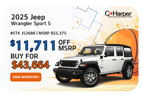 Based on Stock # J52688 VIN # 1C4PJXDGXSW659506. MSRP $55,375. Everyone Qualifies for $4,711 C. Harper Discount, $3,500 National Bonus Cash, and $2,500 in National Retail Bonus Cash. Must Qualify for $1,000 National Stellatis Loyalty Bonus Cash. Resident Restrictions will apply. Buy for $43,664. Plus tax, title, and dealer fees, see dealer for details. Vehicle shown for illustrative purposes only. Limited availability and while supplies last. Offer expires 03/31/2026.