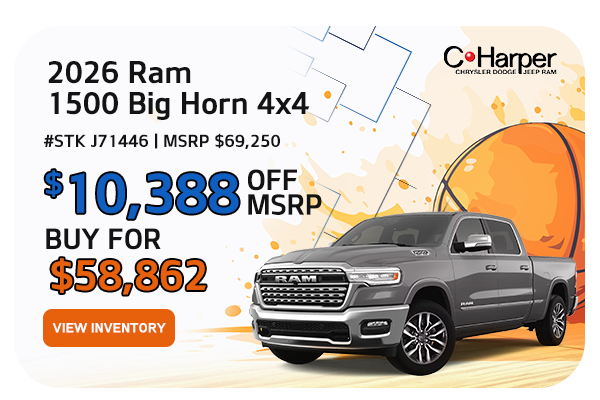 Based on Stock # J71446 VIN # 1C6SRFFP0TN167513. MSRP $69,250. Everyone Qualifies for $6,233 C. Harper Discount, and $4,155 NEBC Cover State Sales Tax Standalone % Below MSRP. Resident Restrictions will apply. Buy for $58,862. Plus tax, title, and dealer fees. See dealer for details. Vehicle shown for illustrative purposes only. Limited availability and while supplies last. Offer expires 03/31/2026.