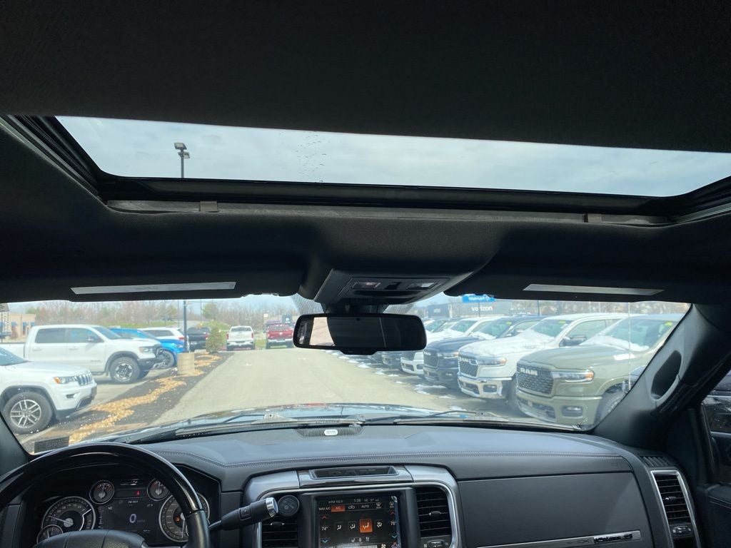 10 Speakers, 115V Auxiliary Power Outlet, 180 Amp Alternator, 3.73 Axle Ratio, 4 Adjustable Cargo Tie-Down Hooks, 4-Wheel Disc Brakes, 4.10 Axle Ratio, ABS brakes, Adjustable pedals, Air Conditioning, Alloy wheels, AM/FM radio: SiriusXM, Anti-Spin Differential Rear Axle, Audio memory, Auto High Beam Headlamp Control, Auto-dimming door mirrors, Auto-dimming Rear-View mirror, Automatic temperature control, Bed Cargo Divider/Extender, Black RAM Tailgate Nameplate, Body Color Fender Flares, Brake assist, Bucket Seats, Center Hub, Chrome Belt Moldings, Chrome Exterior Mirrors, Chrome Grille w/RAM Letters, Chrome RAM Tailgate Nameplate, Clearance Lamps, Compass, Delay-off headlights, Driver door bin, Driver vanity mirror, Dual front impact airbags, Dual front side impact airbags, Electronic Stability Control, Electronically Controlled Throttle, Emergency communication system: Uconnect Access, Exterior Mirrors Courtesy Lamps, Exterior Mirrors w/Heating Element, Exterior Mirrors w/Memory, Exterior Mirrors w/Supplemental Signals, Folding Flat Load Floor Storage, Front anti-roll bar, Front Bucket Seats, Front Center Armrest w/Storage, Front dual zone A/C, Front fog lights, Front reading lights, Fully automatic headlights, Garage door transmitter, Genuine wood console insert, Genuine wood dashboard insert, Genuine wood door panel insert, Heated door mirrors, Heated Front Seats, Heated front seats, Heated rear seats, Heated Second Row Seats, Heated Steering Wheel, Heated steering wheel, Hemi Badge, High Back Seats, Illuminated entry, Instrument Cluster w/Display Screen, Keyless Enter-N-Go, Laramie Limited Leather Bucket Seats, Leather steering wheel, Leather Wrapped Grab Handle, LED Bed Lighting, Limited Chrome Bodyside Molding, Limited Decor Group, Limited Tailgate Applique 4x4, Locking Tailgate, Low tire pressure warning, Luxury Door Trim Panel, Luxury Front & Rear Floor Mats, Manufacturer's Statement of Origin, Memory seat, Navigation System, Next Generation Engine Controller, Occupant sensing airbag, Outside temperature display, Overhead airbag, Overhead console, Painted Front Bumper, Painted Rear Bumper, Panic alarm, ParkView Rear Back-Up Camera, Passenger door bin, Passenger vanity mirror, Pedal memory, Power 10-Way Memory Driver & 6-Way Passenger Seats, Power door mirrors, Power driver seat, Power Folding Chrome Trailer Tow Mirrors, Power Folding Mirrors, Power Lumbar Adjust, Power passenger seat, Power steering, Power Sunroof, Power windows, Premium Filigree Leather Seats, Quick Order Package 22M Limited, Radio data system, Radio: Uconnect 3C Nav w/8.4 Display, Rain Sensitive Windshield Wipers, RAM 2500 Badge, RamBox Cargo Management System, RamBox Delete, Rear 60/40 Split Folding Seat, Rear seat center armrest, Rear step bumper, Remote keyless entry, Remote Proximity Keyless Entry, Security system, Single Disc Remote CD Player, Speed control, Split folding rear seat, Steering Wheel Mounted Audio Controls, Steering wheel mounted audio controls, Tachometer, Tilt steering wheel, Tip Start, Traction control, Trailer Tow Mirrors, Trip computer, Turn signal indicator mirrors, Variably intermittent wipers, Vendor Painted Cargo Box Tracking, Ventilated Front Seats, Ventilated front seats, Voltmeter, Wheel to Wheel Side Steps, Wheels: 18 x 8.0 Aluminum w/Walnut Pockets, Wheels: 20 x 8.0 Satin Carbon w/Chrome Insert, Wood/Leather Wrapped Steering Wheel.
