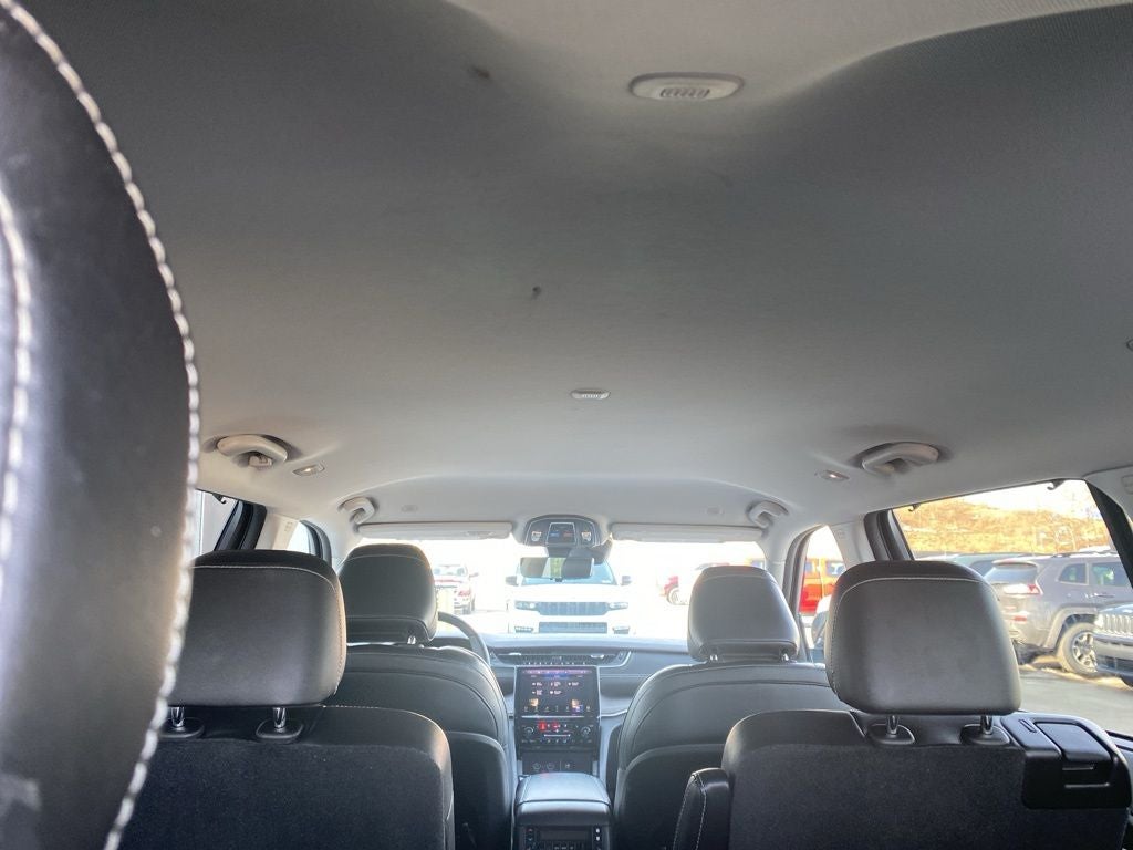 3.45 Rear Axle Ratio, 3rd row seats: split-bench, 4-Wheel Disc Brakes, 6 Speakers, ABS brakes, Active Noise Control System, Air Conditioning, Alloy wheels, AM/FM radio: SiriusXM with 360L, Anti-whiplash front head restraints, Audio memory, Auto High-beam Headlights, Automatic temperature control, Brake assist, Bumpers: body-color, Capri Leatherette Seats, Compass, Delay-off headlights, Driver door bin, Driver vanity mirror, Dual front impact airbags, Dual front side impact airbags, Electronic Stability Control, Emergency communication system, Four wheel independent suspension, Front anti-roll bar, Front Bucket Seats, Front Center Armrest w/Storage, Front dual zone A/C, Front fog lights, Front reading lights, Fully automatic headlights, Garage door transmitter, Heated door mirrors, Heated front seats, Heated rear seats, Heated steering wheel, Illuminated entry, Knee airbag, Low tire pressure warning, Luxury Tech Group II, Manual Fold Seatbacks, Memory seat, Memory Steering Column, Molded In Color Black/Gloss Black Roof Rails, Navigation System, Normal Duty Suspension, Occupant sensing airbag, Outside temperature display, Overhead airbag, Overhead console, Panic alarm, ParkView Rear Back-Up Camera, Passenger door bin, Passenger vanity mirror, Power door mirrors, Power driver seat, Power Liftgate, Power passenger seat, Power steering, Power windows, Quick Order Package 23E, Radio data system, Radio: Uconnect 5 Nav w/10.1 Display, Rain Sensitive Windshield Wipers, Rear air conditioning, Rear anti-roll bar, Rear reading lights, Rear window defroster, Rear window wiper, Reclining 3rd row seat, Remote keyless entry, Security system, Speed control, Speed-Sensitive Wipers, Split folding rear seat, Spoiler, Steering wheel mounted audio controls, Tachometer, Telescoping steering wheel, Tilt steering wheel, Traction control, Trip computer, Turn signal indicator mirrors, Variably intermittent wipers, Voltmeter, Wheels: 18 x 8.0 Fully Painted Aluminum.